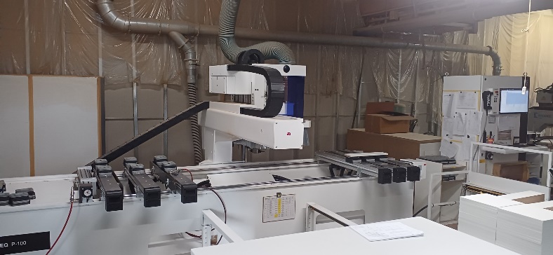 | 仕 様 | 5軸制御スピンドルとグルーユニットを装備•鋸加工 •ルータ加工 •ボーリング加工•切断加工 •3次元加工加工長さ:4.200mm(単一加工)加工材巾(手前ストッパー時):全ユニット:950mm加工材巾(後方ストッパー時):全ユニット:1.400mm加工材高さ:標準吸着カップ使用時、最大60mm | ||